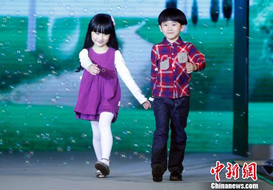 3月12日晚,中外童装品牌在上海联袂发布新款童装。汤彦俊 摄
