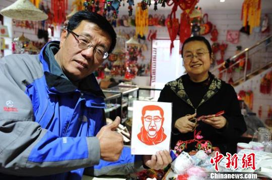 甘肃剪纸爱好者5分钟剪出漫画肖像
