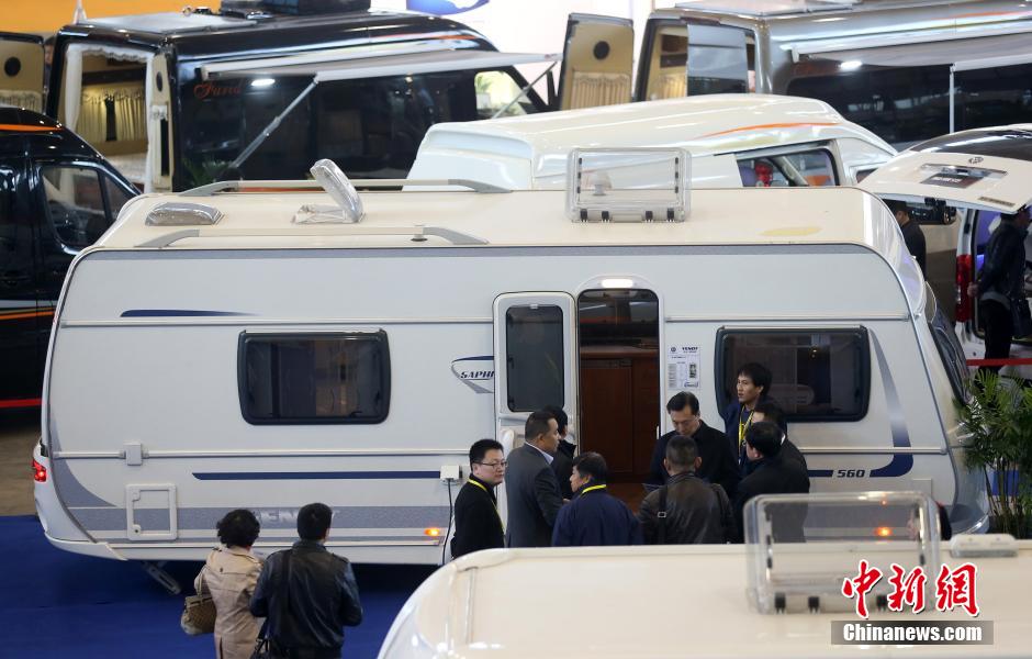 3月14日,参观者被展出的房车吸引。当日,一场房车展亮相南京,国内外众多房车品牌齐聚一堂,向消费者推广房车生活新概念。中新社发 泱波 摄