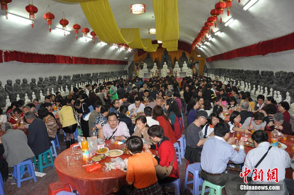 3月19日,农历二月十九观音诞,福州千年古刹开元寺举办千人素宴,场面壮观。近两千人参加宴席,一千五百多人品尝了寺中的平安吉祥面。李栋财 摄