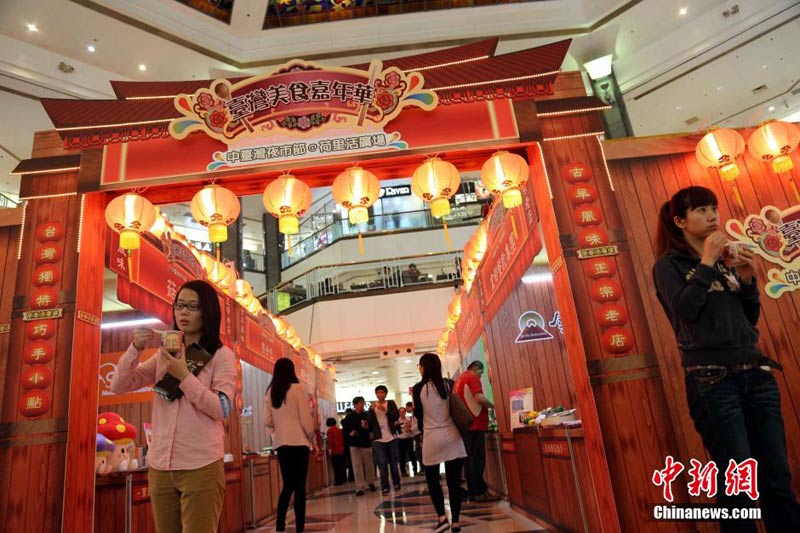 3月20日,香港市民在品尝地道台湾美食。当天,香港荷里活广场举办的“中台湾夜市”美食嘉年华开幕,汇集台中八家人气食品店,为市民提供最地道的台中夜市美食。中新社发 洪少葵 摄