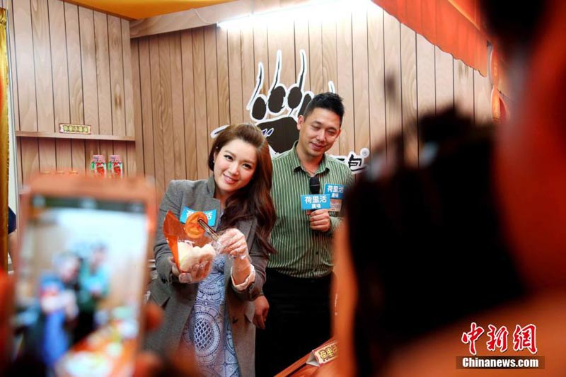 3月20日,香港市民在品尝地道台湾美食。当天,香港荷里活广场举办的“中台湾夜市”美食嘉年华开幕,汇集台中八家人气食品店,为市民提供最地道的台中夜市美食。中新社发 洪少葵 摄