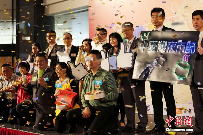3月20日,香港市民在品尝地道台湾美食。当天,香港荷里活广场举办的“中台湾夜市”美食嘉年华开幕,汇集台中八家人气食品店,为市民提供最地道的台中夜市美食。中新社发 洪少葵 摄