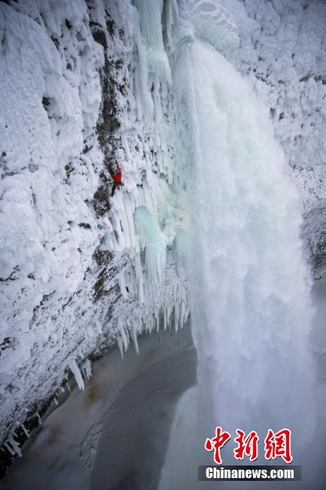 近日,加拿大攀冰高手威尔-加德经受住了零下35摄氏度的极端条件下花费8个小时成功登上了约140米高的汉默肯瀑布,成为这个瀑布的第一个攀登者。汉默肯瀑布位于加拿大不列颠哥伦比亚,是世界上公认的最艰难的混合路线。图片来源:东方IC 版权作品 请勿转载