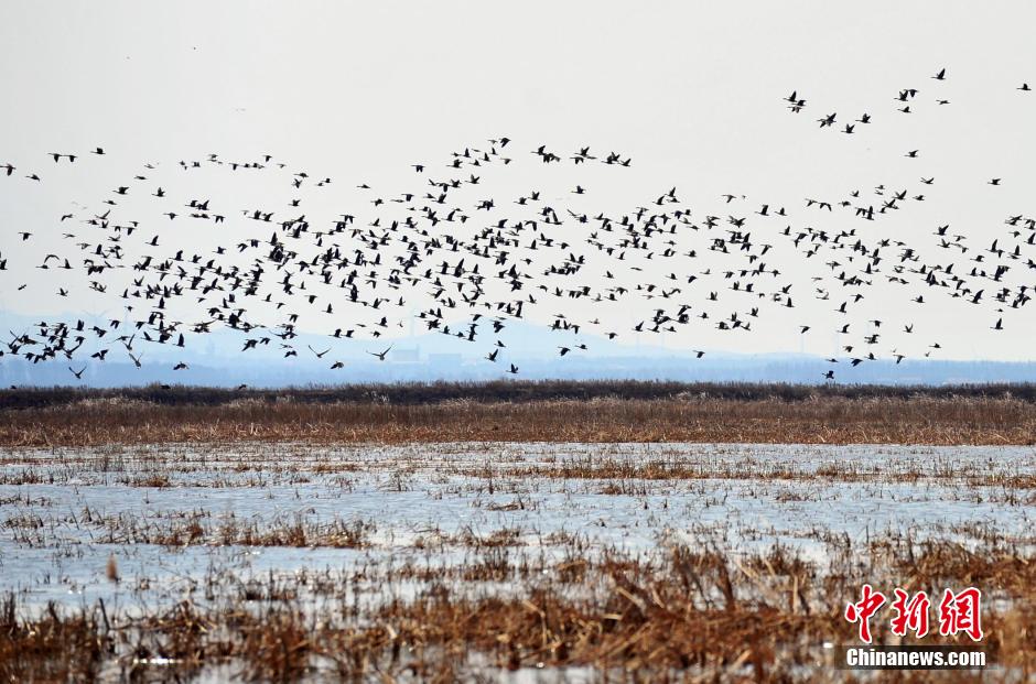 3月29日,辽宁省沈阳市康平县卧龙湖湿地观鸟节开幕,数百名游客慕名而来,领略大自然的美景。据了解,卧龙湖水域总面积112平方公里,是东北亚鸟类迁徙的必经之地,每年有上百万只候鸟在此停留繁衍,其中国家一级保护鸟类5种,二级保护鸟类19种。中新社发 于海洋 摄