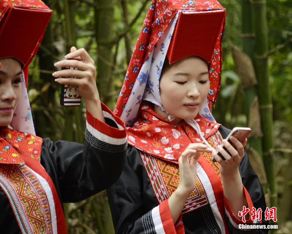 图为爱美的大板瑶姑娘用手机自拍。翟李强 摄