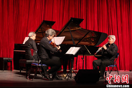 4月3日晚,“意大利拉蒂纳国立音乐学院专家团专场音乐会”在内蒙古大学艺术学院开演。中新社发 孙涛 摄