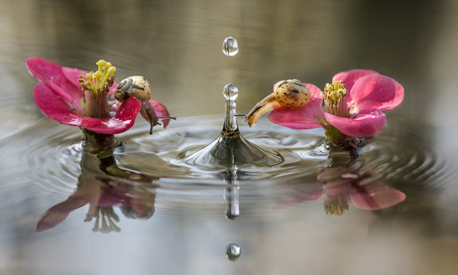 好奇蜗牛探头围观水涡显呆萌