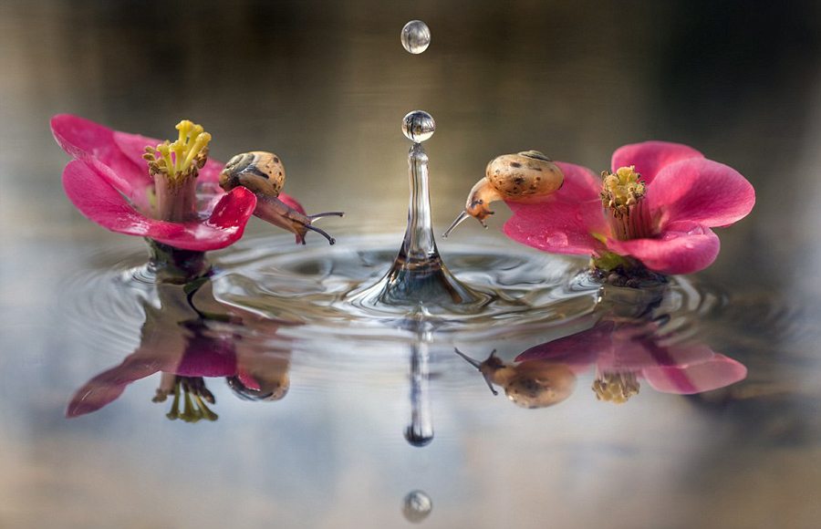 好奇蜗牛探头围观水涡显呆萌