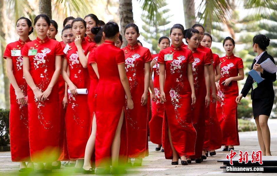 4月7日,在海南博鳌论坛永久会址负责接待工作的礼仪小姐们在现场了解引导路线。博鳌亚洲论坛2014年年会将于4月8日至11日在海南博鳌召开,主题为“亚洲新未来:寻找和释放增长新动力”,论坛将围绕主题进行近60场正式讨论。中新社发 陆欣 摄
