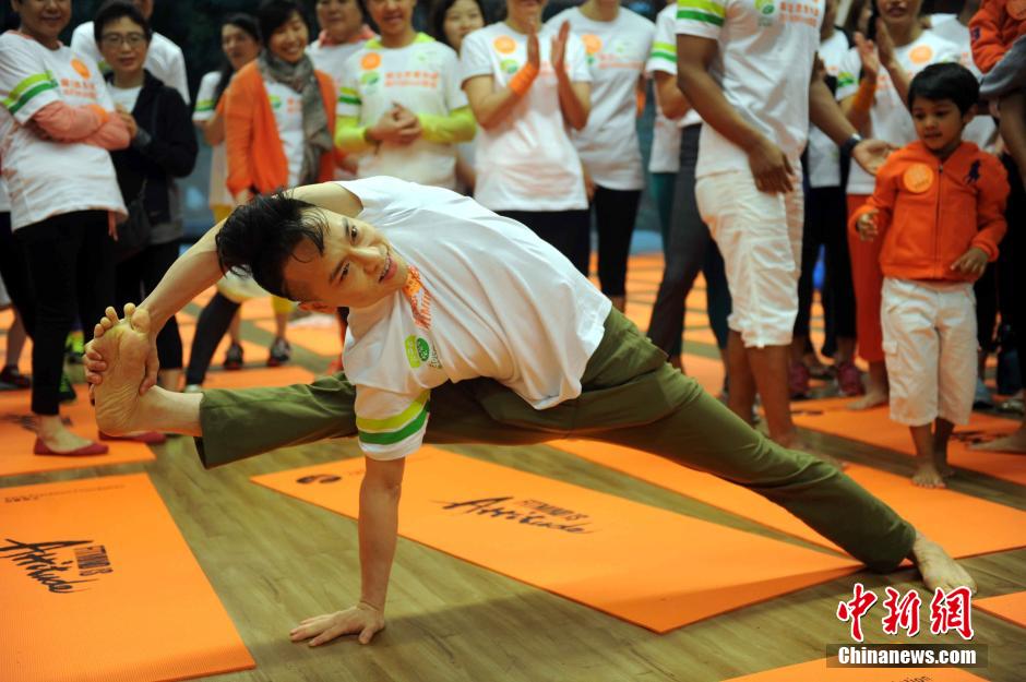 4月6日,香港大批市民在拔萃男书院举行大型的瑜伽筹款活动,为年轻思觉失调病患者筹款。中新社发 谭达明 摄