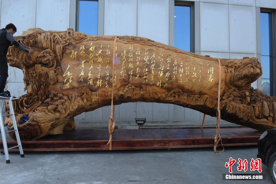 毛泽东诗词巨型根雕亮相 标价580万元