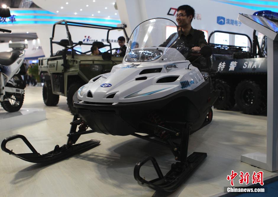 图为展会现场,军民两用雪橇车吸引市民前往体验。周毅 摄