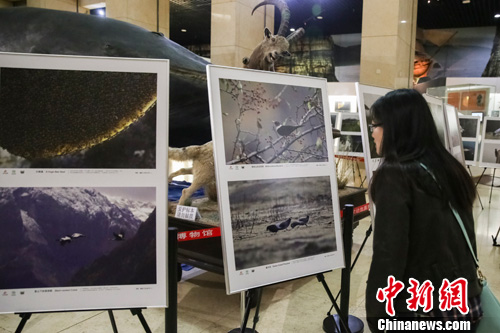4月11日,“西藏雅鲁藏布大峡谷生物多样性图片展暨《雅鲁藏布的眼睛》新书发布会”在北京国家动物博物馆举行。2010至2011年,西藏生物影响调查团队在雅鲁藏布大峡谷及周边进行科学考察与影像拍摄,记录了大量珍稀物种照片。《雅鲁藏布的眼睛》共收录600多福珍贵的动植物图片,此次展览展出了100余幅珍稀物种照片。中新社发 熊然 摄