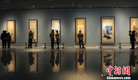4月13日,观众欣赏张大千书法作品。当日,由山东美术馆、台湾长流美术馆主办的“千古传奇·张大千艺术作品展”在济南开展。中新社发 张勇 摄