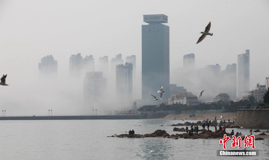 青岛前海现平流雾美景