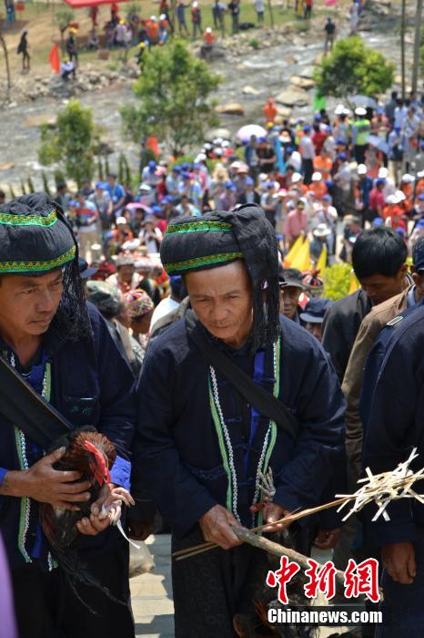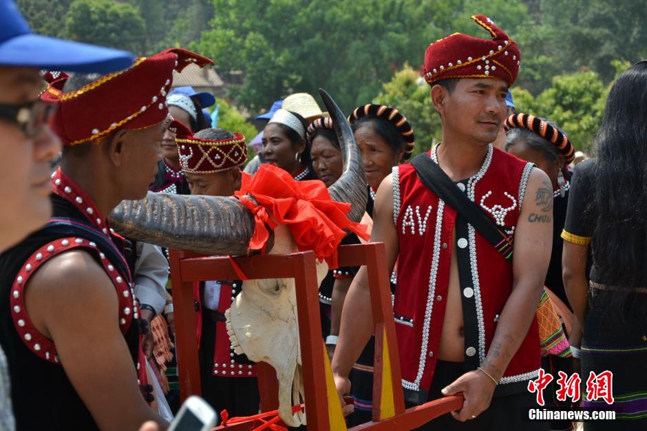 4月15日,云南临沧勐库镇举办祭茶祖活动,当地的布朗族、拉祜族、佤族、傣族群众分别按照自身民俗举行了祭颂仪式。中新社发 蒋卓成 摄