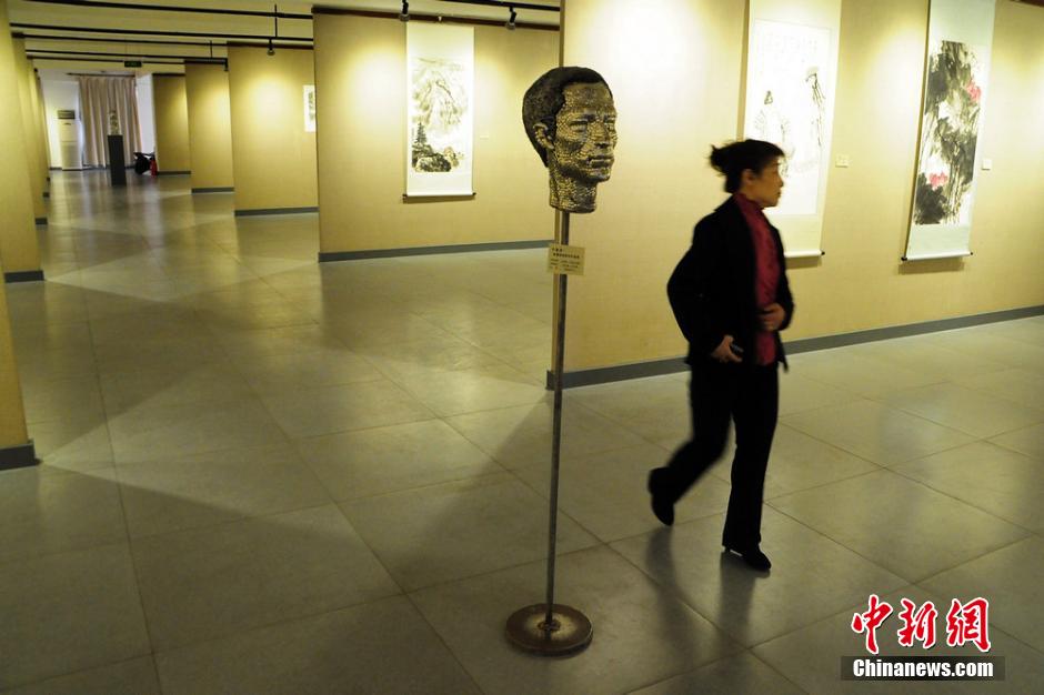 普通钉子拼成人头像作品亮相乌鲁木齐