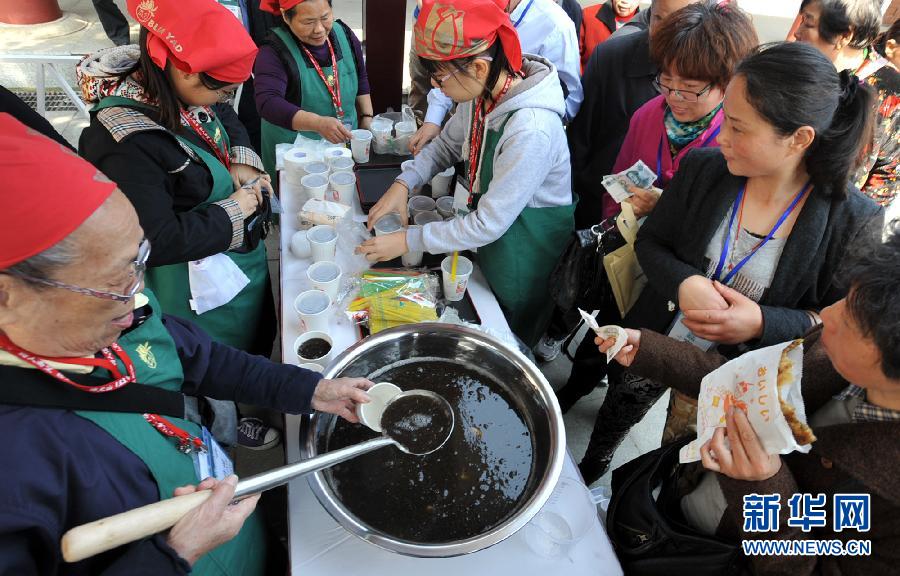 4月22日,市民和游客在扬州“素博会”上购买食品。当日,为期4天的2014中国扬州·两岸素食文化暨绿色生活名品博览会在扬州鉴真图书馆开幕。本届“素博会”汇聚海内外众多素食类产品,上演了一场素食盛宴。新华社发(庄文斌 摄)