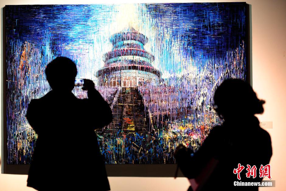 4月25日,由台湾高雄市立美术馆与湖北美术馆等单位联合主办“他者·距离——两岸当代艺术交流展”在湖北美术馆举行,海峡两岸30位艺术家的30件(组)艺术品同台展出。众多不同体裁的艺术品同台展出,给人一种恍如穿越时空的感觉。据悉,“他者·距离——两岸当代艺术交流展”将于今年底赴台湾高雄等地交流展出。中新社发 张畅 摄