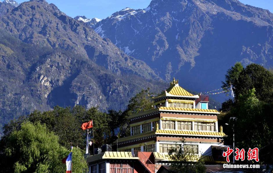 玉洁寺始建于1982年,位于西藏自治区日喀则地区聂拉木县樟木镇,属于藏传佛教宁玛派。玉洁寺全景。李林 摄