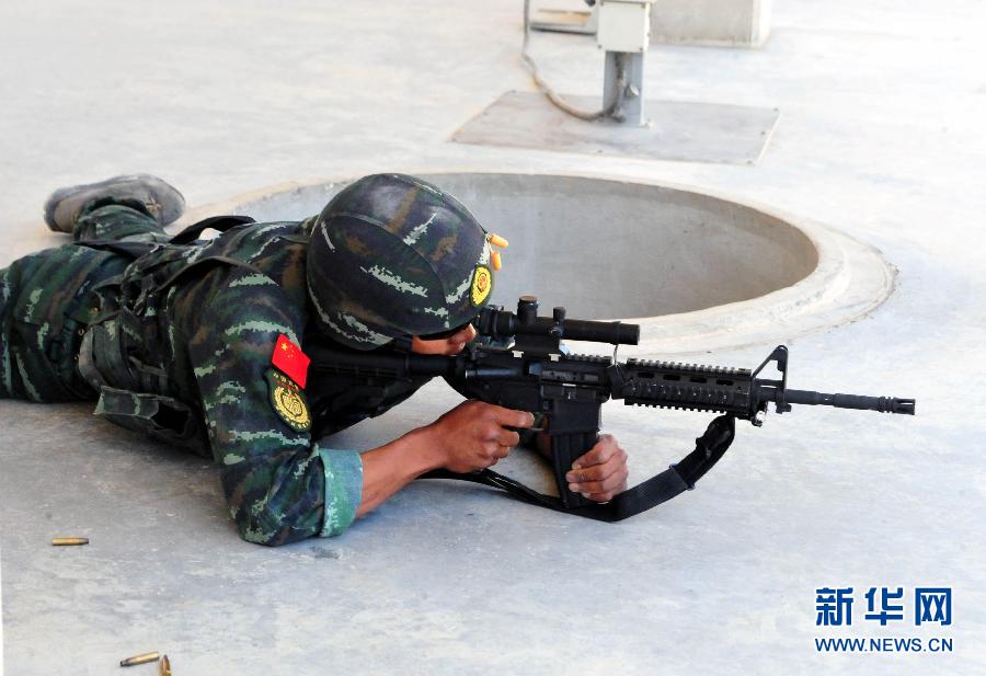5月1日,中国队队员参加代号为“卡宾枪糖果”课目的靶位射击比武。
