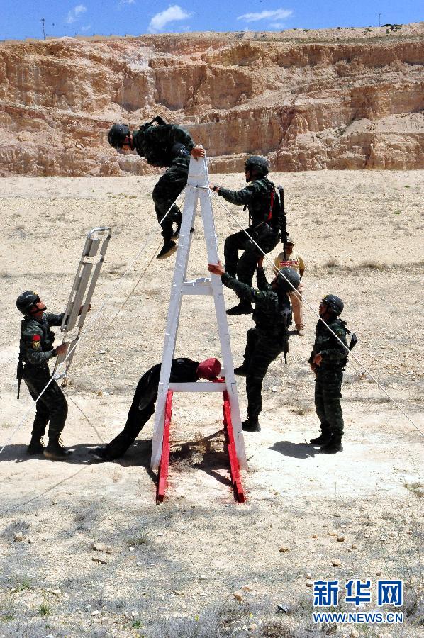 当日,在约旦举行的第六届“勇士竞赛”国际特种兵比武进行第一天角逐,中国队参加了代号为“泪痕”“卡宾枪糖果”和“最后的好日子”等三个课目的比武,取得了理想的成绩。 新华社记者程春香摄