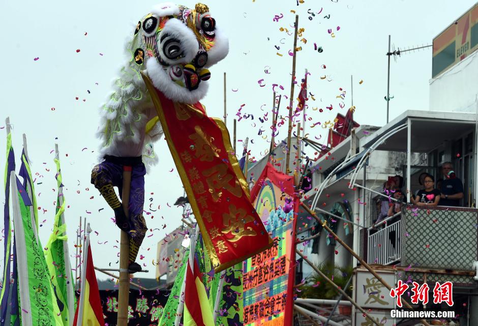 香港长洲太平清醮飘色巡游雨中举行