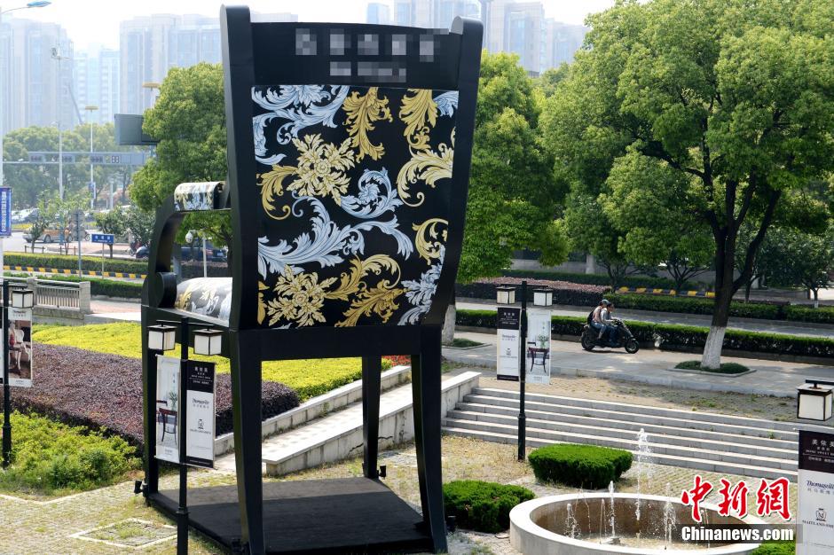 5月8日,一把高约10米的巨型椅子出现在江苏苏州街头,“巨无霸”式的身材吸引了过往路人好奇的目光。中新社发 王思哲 摄
