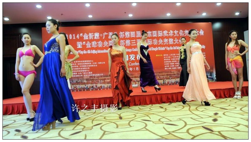 大会设置武术套路比赛、散打比赛、跆拳道比赛、太极推手比赛、摔跤以及各种民间传统武术项目的比赛。大会期间,还将同步举行国际功夫高峰论坛、第二届国际功夫联合会代表大会等活动。图为5月12日在北京国际会议中心召开新闻发布会现场表演中国武术功夫和模特表演。工人日报-中工网记者许之丰摄影报道