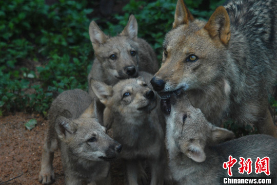 小狼深情地吻着狼妈妈。深圳野生动物园里演绎着一幕幕母子情深的温馨画面——母狼对7只小狼的体贴入微,斑马妈妈深情地给小斑马送上甜蜜的吻,火烈鸟妈妈精心地给小火烈鸟传授觅食的本领……动物母亲的母爱弥散在动物园的每个角落。中新社发 李木生 摄