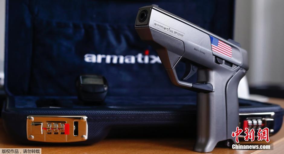 当地时间5月14日,智能手枪在德国慕尼黑亮相。该枪必须距离装有芯片的手表10英寸内才可发射,而距离大于10英寸时扣动扳机将没有任何反应。