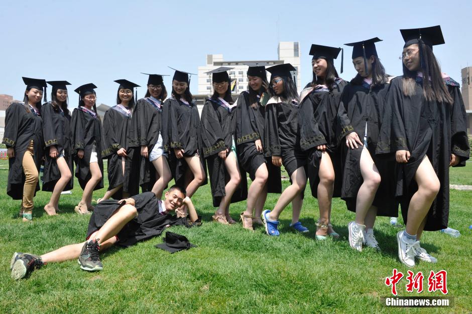 5月22日,山西大学毕业生在校内拍毕业留念照。又到一年毕业时,即将离校的大学生在校园里拍摄个性化毕业照,纪念在高校度过的青春岁月。中新社发 韦亮 摄
