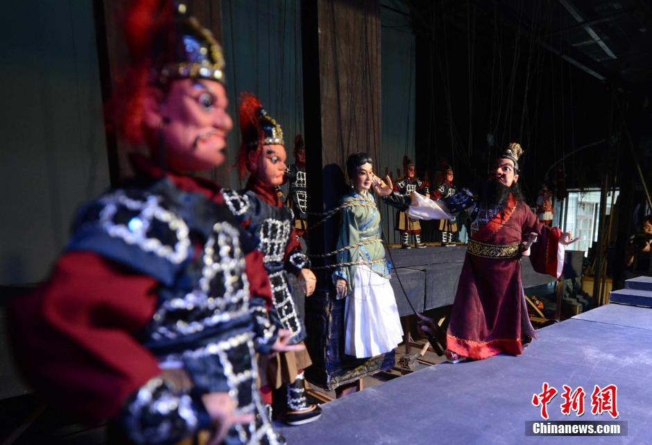 5月中旬,泉州木偶剧团表演者进行木偶戏排练。泉州提线木偶戏,古称悬丝傀儡,源于秦汉。据文献记载,最晚于唐末五代已在泉州及周边地区流行。此后历经宋、元、明、清以至当代,传承不辍。至今保存700余出传统剧目和由300余支曲牌唱腔构成的独有剧种音乐“傀儡调”。中新社发 王东明 摄