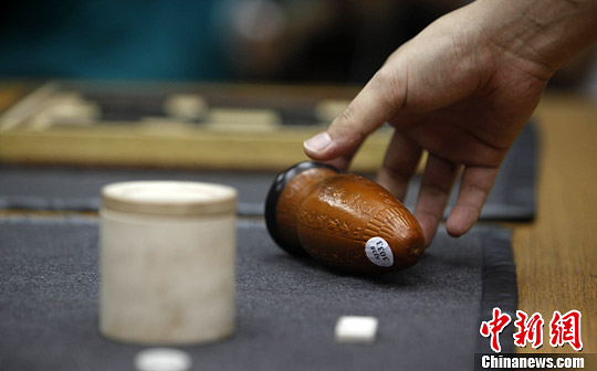 图为媒体查看重要拍品——一批精彩绝伦的鸣虫蓄器。中新社发 杨可佳 摄
