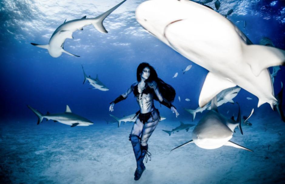 据英国《每日邮报》报道,澳大利亚38岁女模汉娜·弗雷泽(Hannah Fraser)在不携带任何防身武器、不穿戴潜水设备的情况下,冒着生命危险在大西洋巴哈马群岛附近的15米深水下与5米多长虎鲨共舞。艾美奖获奖摄影师肖恩·海因里奇斯(Shawn Heinrichs)记录下这一幕。