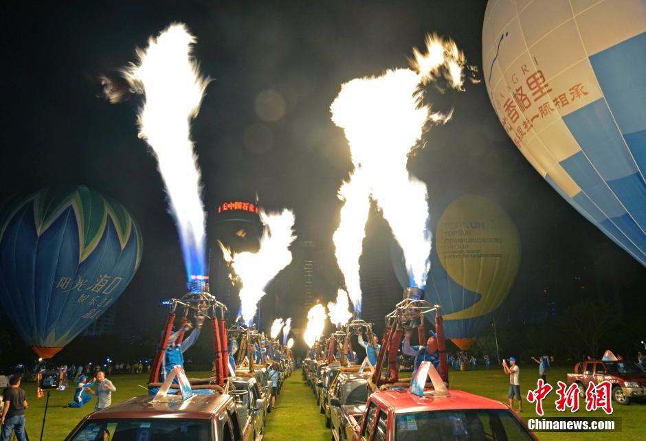 6月13日晚,第八届海口热气球节暨 H1中国热气球巡回赛在海南省海口市举行。来自全国的32支热气球队将在未来三天做精彩表演,并将有15支队伍在琼州海峡上空展开激烈的竞赛。骆云飞 摄
