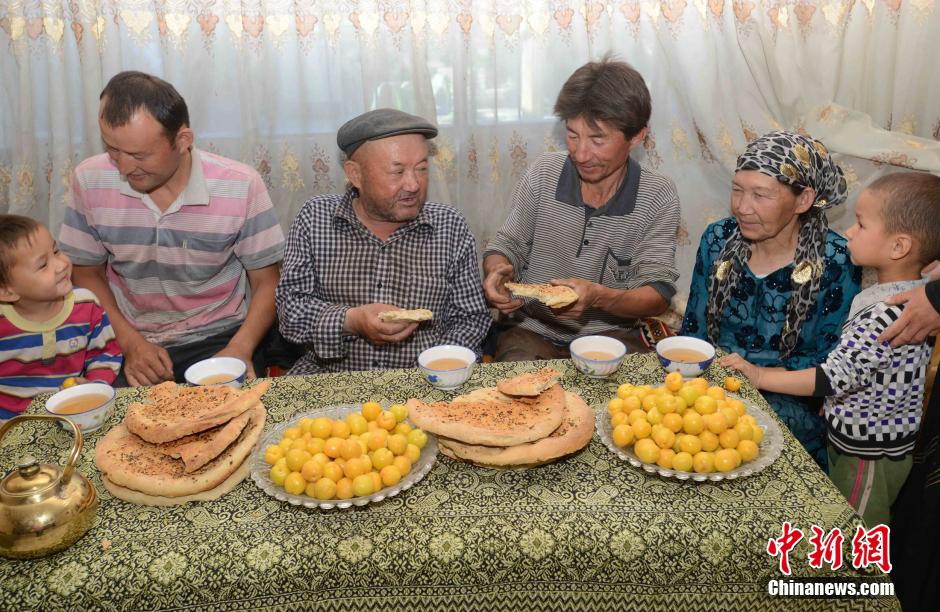 又到一年一度杏子成熟的季节了,6月27日,新疆轮台县铁热克巴扎乡曼曲鲁克村3组农民阿里木·木沙家在沙滩上晾晒杏子。轮台县新疆南疆产杏大县,享有“中国小白杏之乡”的美誉。中新社发 确·胡热 摄