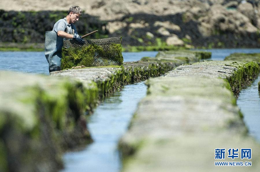 7月2日,牡蛎养殖工人在法国埃泰勒工作。 新华社/法新
