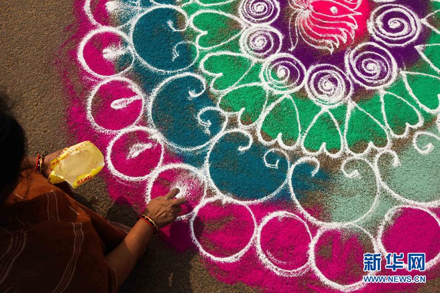 6月29日,一名画师在印度奥里萨邦普里市的街道上绘画,庆祝“战车节”。当日是印度一年一度的传统宗教节日“战车节”,这是印度最隆重的节日之一。成千上万的民众来到东部的奥里萨邦普里市,拖拉载有印度教宇宙之神贾格纳等形象的的巨型“战车”,重现传说中诸神出行的场景。新华社记者郑焕松摄