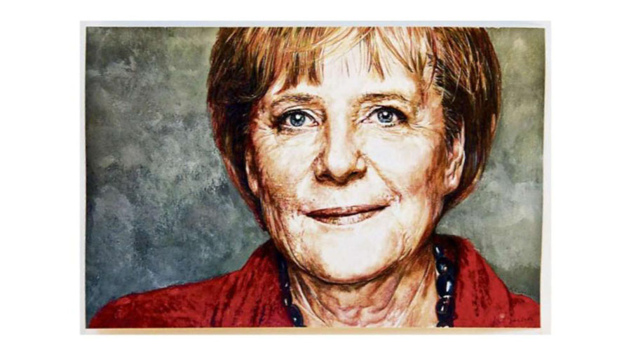 默克尔迎来60岁生日 德国民众为其画肖像庆祝
