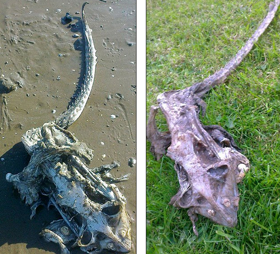 丽莎将其照了下来并将照片传到“脸书”网上,引发了人们各种疯狂的猜想:有人认为是蜥蜴或天鹅,还有人猜测是羊驼。布里斯托大学的教授称:“从照片来看,这具骨架像是一只深海生物,很有可能是日本须鲸。”
