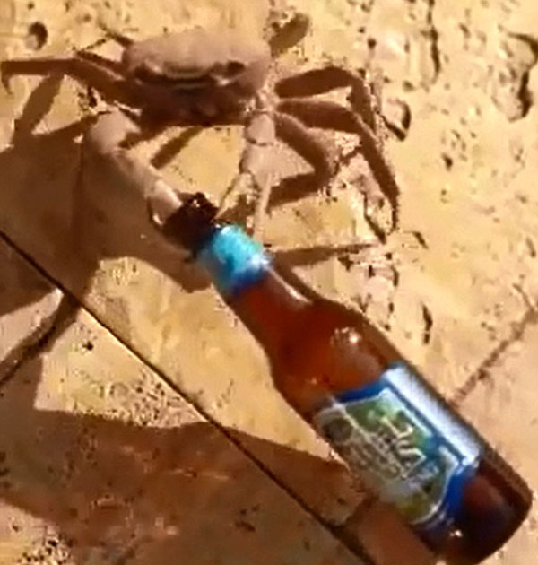 英国《每日邮报》7月14日报道,在海滩上度假的游客请保持警惕,因为螃蟹钳子不仅可能夹伤皮肤,它们还可能偷走你的好酒。近日被上传到YouTube的一段搞笑视频显示,一只螃蟹利用其钳子勾着啤酒瓶溜走,死活不肯松开。