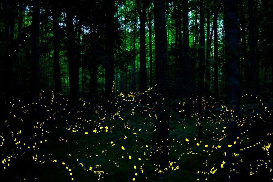 在美国田纳西州的大雾山国家公园,萤火虫上演了一场精彩绝伦的“灯光秀”,吸引数千游客前往埃尔克蒙特(Elkmont)参观。每年六月,萤火虫的炫丽表演会持续两周,俨然把公园变成了詹姆斯·卡梅隆导演所拍摄电影《阿凡达》的科幻世界。