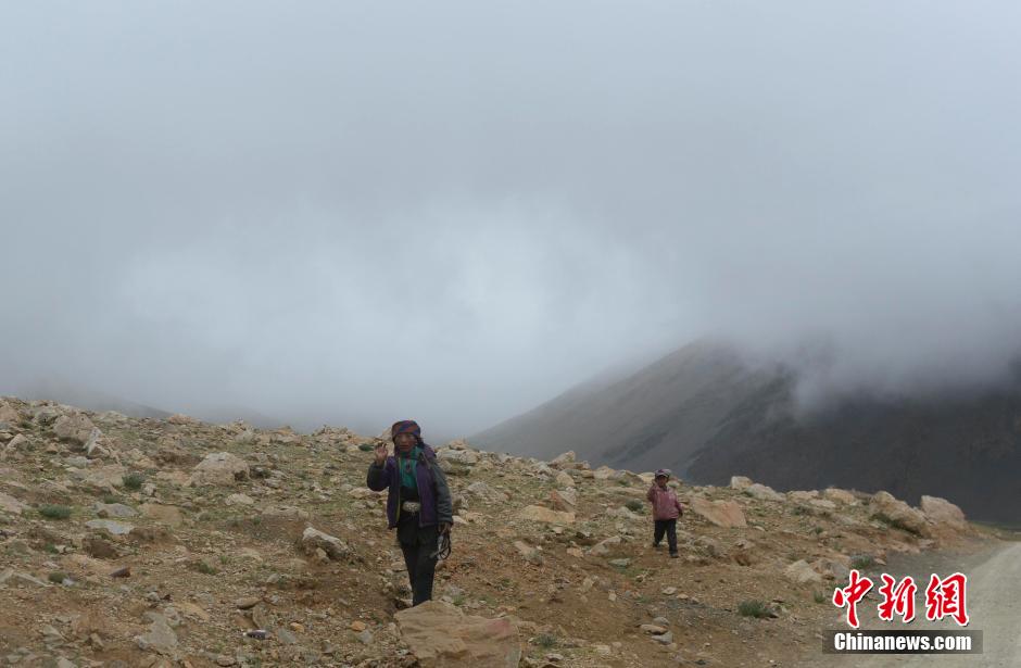 7月中旬,从西藏定日县城前往珠峰大本营,海拔提升1000米的过程中云雨相伴。中新社发 廖攀 摄