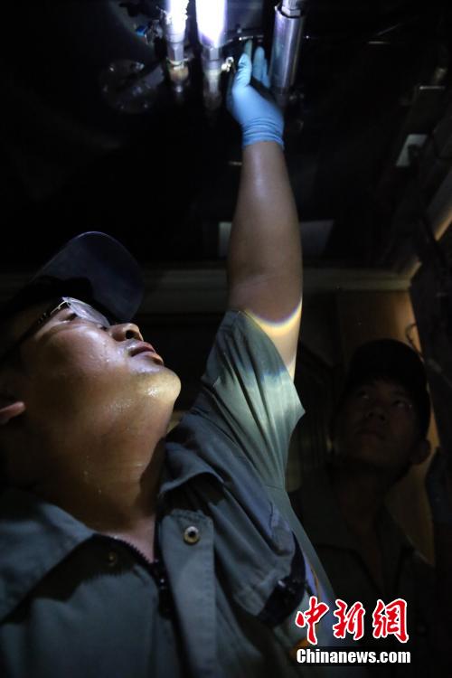 车内服务设施损坏集中在卫生间设施、座椅、行李架等旅客服务设施。按照每天晚上检修10列左右长编动车组,检修班组大约要对10000余个座椅、5000余件旅客服务设施逐个进行检查试验。梁犇 摄