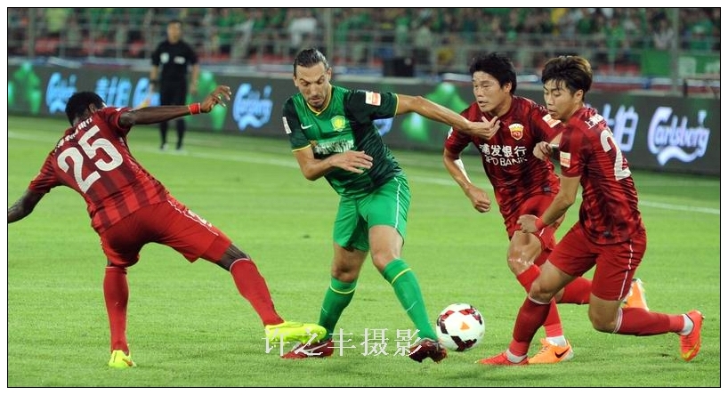 中超联赛第19轮赛:北京国安主场2比0战胜上海上港队