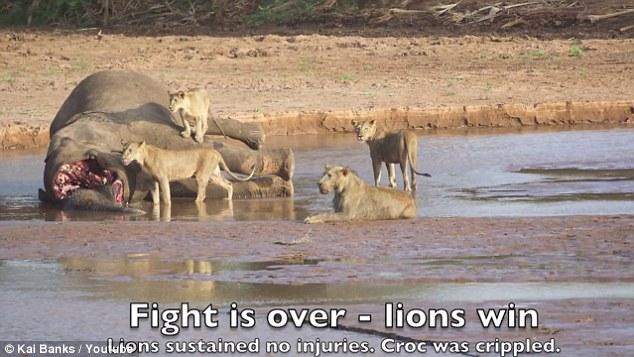 据《每日邮报》2014年8月20日报道,肯尼亚Samburu野生动物保护区的数头狮子最近因争夺食物,与一头成年尼罗河鳄鱼打了起来。最终,狮子们凭借数量上的优势,咬伤了这头巨大的鳄鱼,后者随即逃之夭夭。(网页截图)