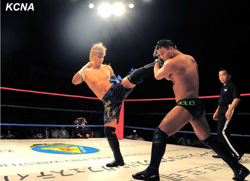 朝鲜国际职业摔跤赛开战 现场座无虚席(高清组图)