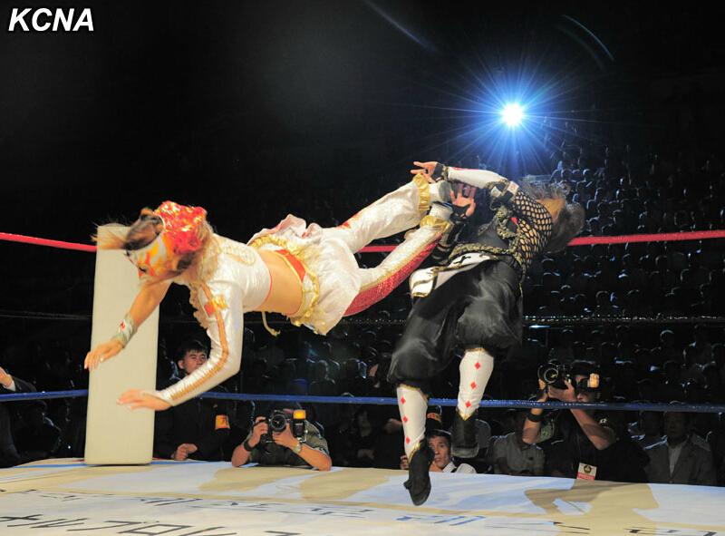 朝鲜国际职业摔跤赛开战 现场座无虚席(高清组图)